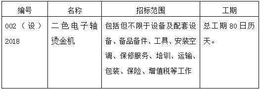 江蘇大亞新型包裝材料有限公司二色電子軸燙金機設招標公告