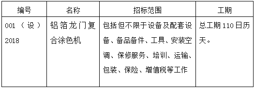 江蘇大亞新型包裝材料有限公司鋁箔龍門復合涂色機招標公告