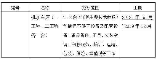 項目名稱:機加車床兩臺(一工程、二工程各一臺)
