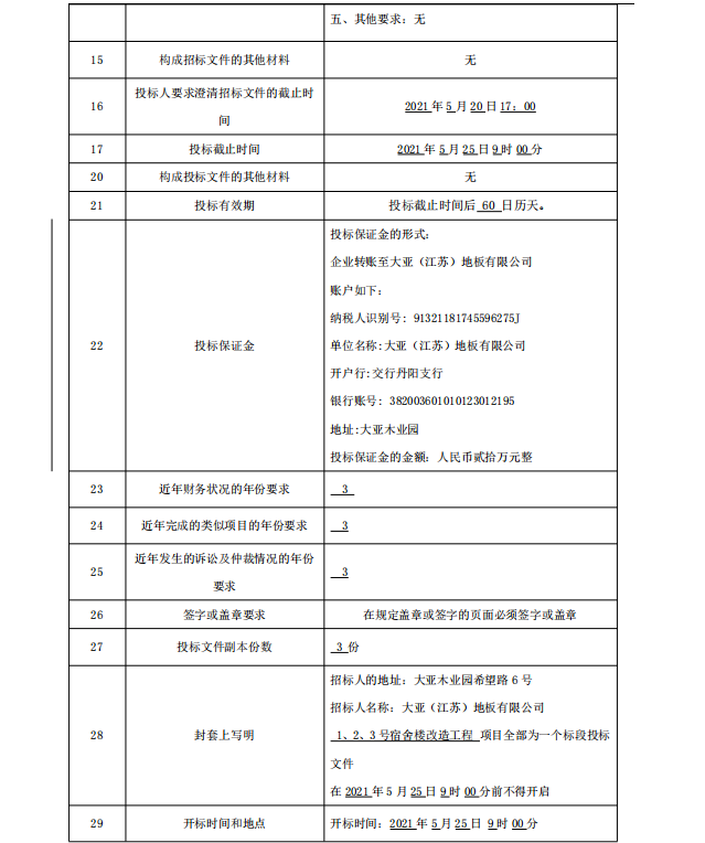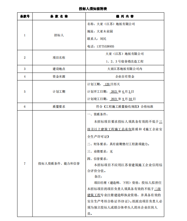附件:大亞(江蘇)地板有限公司1、2、3號宿舍樓改造 招標文件