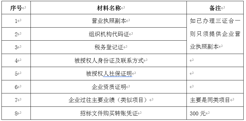 2、 凡有意向參加投標(biāo)者,請在上述期間內(nèi)按下表提供報名資料,相關(guān)證明文件的原件如無法提供原件則提供復(fù)印件加蓋公司公章,投標(biāo)人須將上述資料的掃描件發(fā)郵件至招標(biāo)聯(lián)系人處進(jìn)行報名。