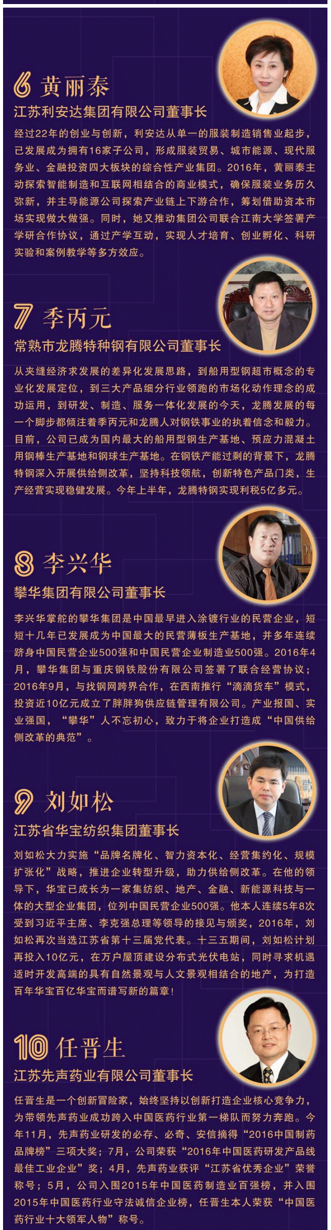 “2017第11屆蘇商領(lǐng)袖年會”即將在南京盛大舉行。屆時,“2016蘇商十大年度經(jīng)濟(jì)人物”將重磅登場,從社會關(guān)注、業(yè)界影響、商業(yè)變革、社會責(zé)任感等多角度彰顯江蘇企業(yè)家的獨(dú)特魅力。
