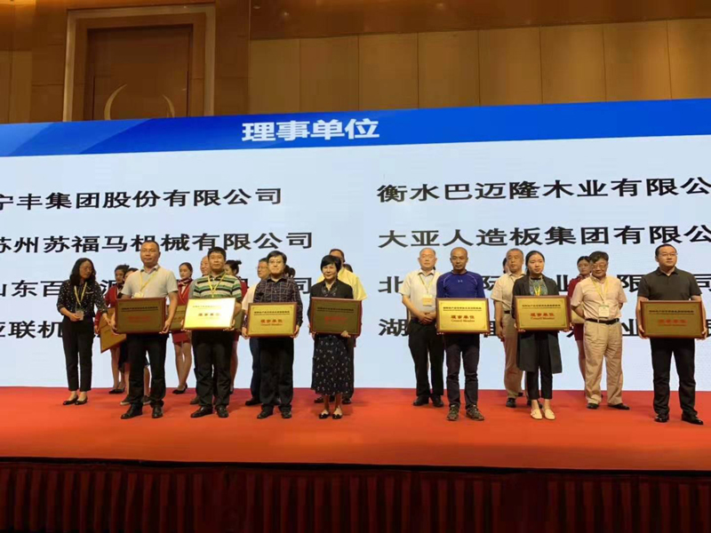 在隨后進行的國際林產品可持續發展創新聯盟成立儀式上,大亞人造板作為理事單位上臺領取榮譽獎牌。