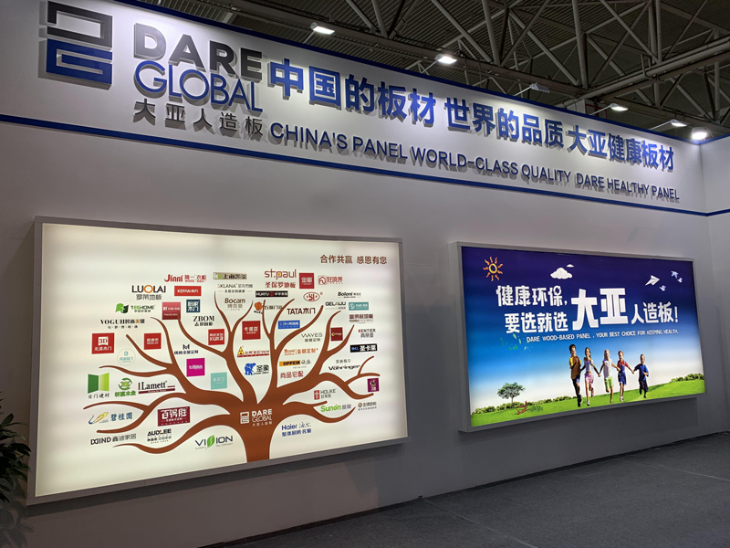 大亞人造板現場展出了無醛刨花板、無醛地板基材、無醛鏤銑板、無醛家具纖維板、高防潮刨花板、防潮地板基材、防潮門板、防霉纖維板、防霉刨花板、低吸漲纖維板、低吸漲刨花板、阻燃纖維板、電子線路墊板、鞋跟板等代表人造板行業先進技術水平的產品,吸引了眾多客戶前來觀摩洽談。