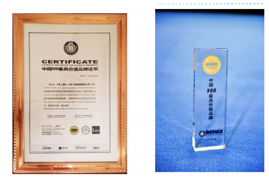 8月5日,由世界品牌實驗室(World Brand Lab)主辦的(第十七屆)“世界品牌大會”在北京舉行,會上發(fā)布了2020年《中國500最具價值品牌》分析報告。在這份基于財務(wù)數(shù)據(jù)、品牌強度和消費者行為分析的年度報告中,圣象以572.59億元人民幣品牌價值再次入選,榮膺第102位,繼續(xù)領(lǐng)跑中國家居行業(yè);大亞人造板以182.81億元品牌價值蟬聯(lián)中國人造板行業(yè)榜首,品牌排名322位,價值增幅15.2%。