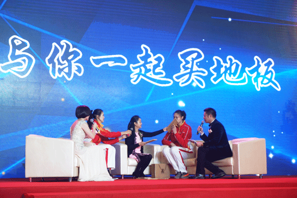 活動現場,消費者可享受活動“歡樂送”的優惠以及圣象管家服務的終身產品服務保障,女排隊員惠若琪和張常寧現場進行了一個別開生面的買地板環節,體驗了完整的消費流程,包括售前、售中、售后,并與大家一起分享消費感受與心得,對圣象地板的產品品質與服務贊不絕口。